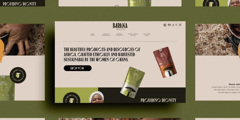 One of our favorite projects was working with Baraka Impact to create branding, packaging, and a website design. The company produces fairtrade, sustainable shea butter, oils, and artisan goods from Ghana.