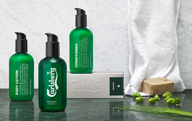 Carlsberg teamed up with cosmetic producer Urtegaarden to create a limited edition series of male grooming products: shampoo, conditioner and body lotion.