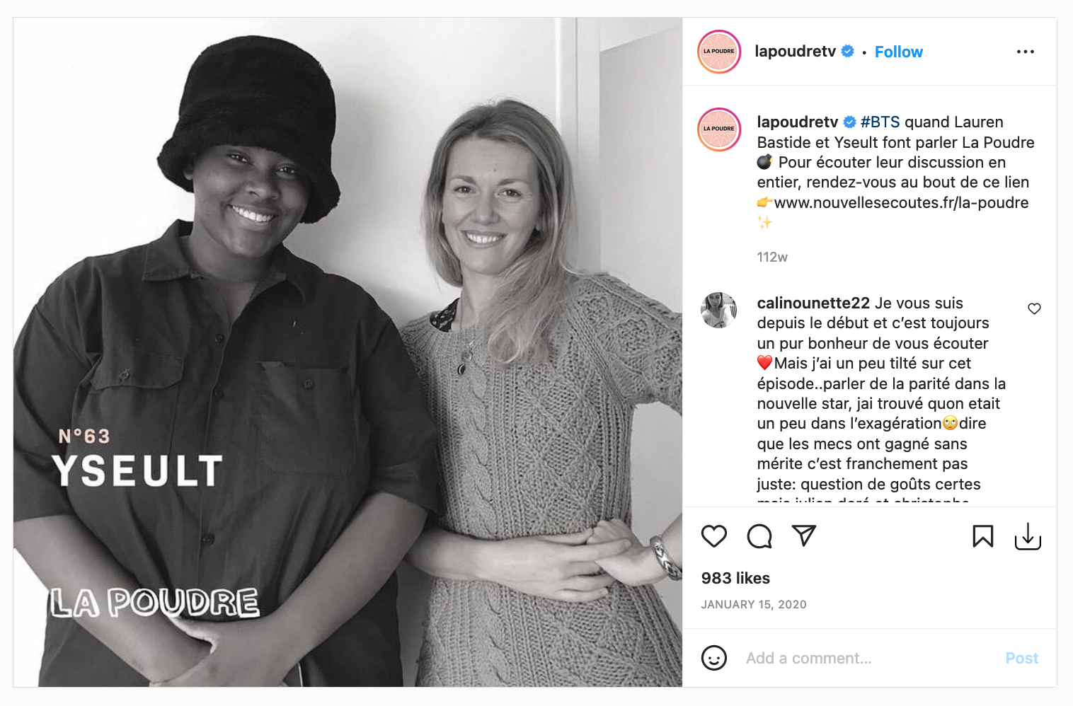 This probably contributed to the growing success of La Poudre. The Podcast often appears within the Top 5 French podcasts on iTunes and their Instagram now counts more than 56,000 followers.